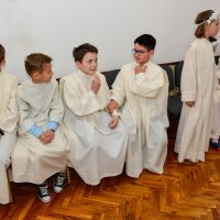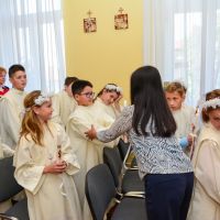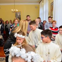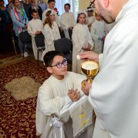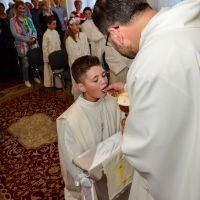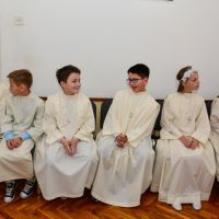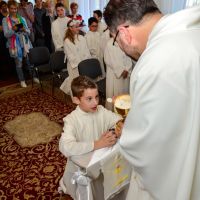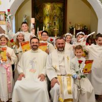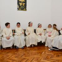 U nedjelju, 14. svibnja 2017., u župi sv. Obitelji na Pećinama Prvoj svetoj pričesti pristupilo je devet prvopričesnika. Uz prigodne recitacije i s osmijehom na licu, učenici su prvi put primili Isusovo tijelo. Misno slavlje predvodio je župnik Vjekoslav Kovač uz asistenciju svećenika Slobodana Bunoze. Slavlje su svojim prisustvom uveličale i ravnateljica škole, učiteljica prvopričesnika i vjeroučiteljica. Nakon završetka misnog slavlja župnik je svim majkama čestitao Majčin dan. Svim prvopričesnicima i njihovim roditeljima još jednom iskrene čestitke.